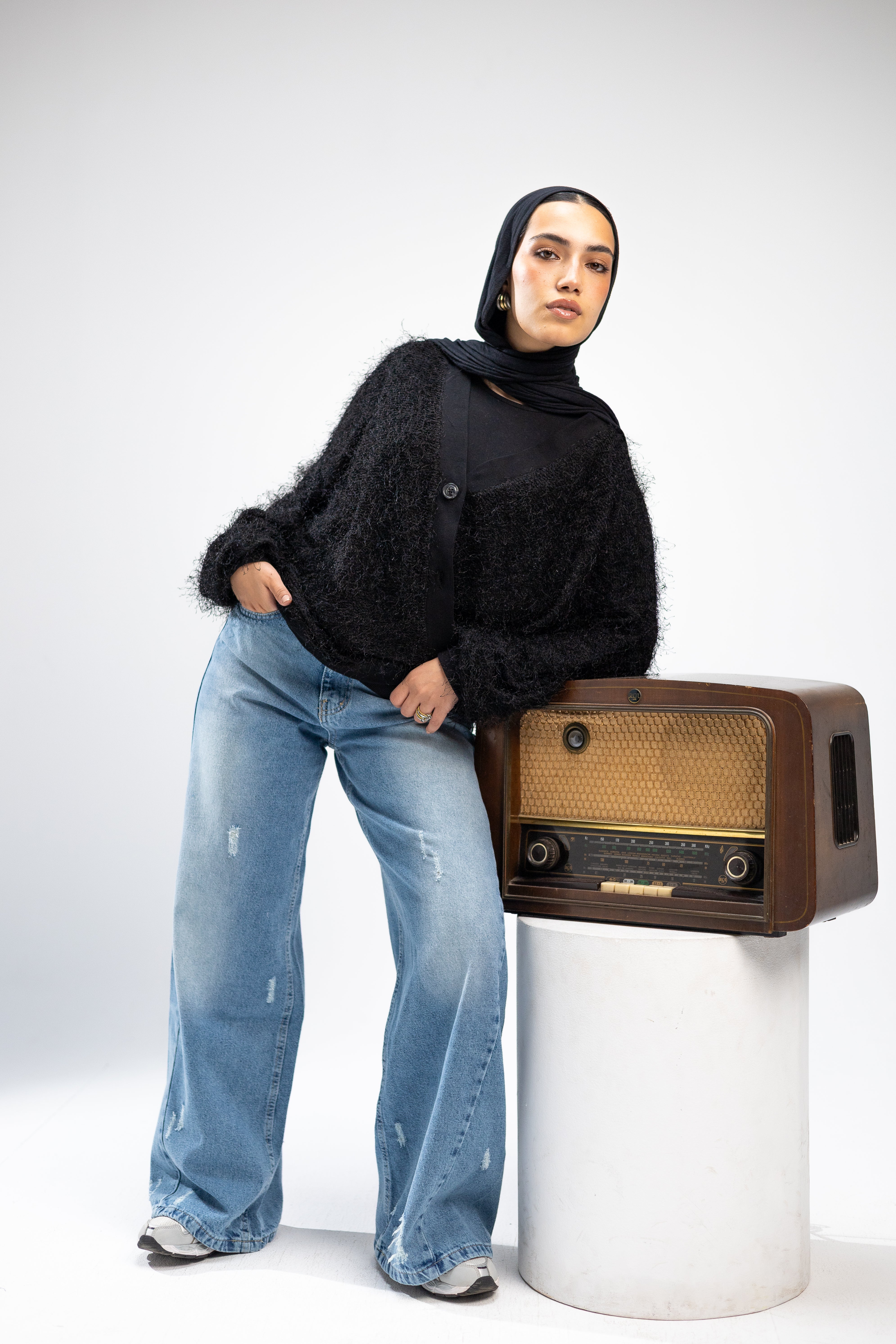 Soft mohair-blend knit with long, airy threads. Warm, lightweight, and breathable.